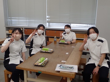 4年間の学生生活について発表してもらい、その後、フリートークをしました。