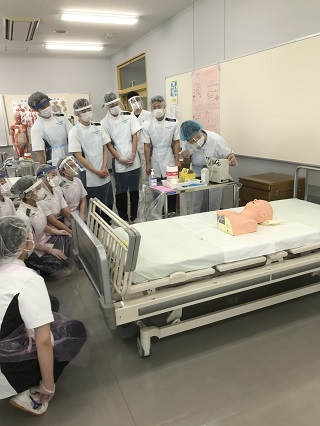 またこの科目では、地域における作業療法士の仕事で必要となる喀痰吸引について看護学科の先生にお願いし、講義と実習をしていただいています。