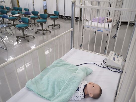 また、小児看護方法論Ⅱでは、講義のみならず、新生児人形やバイタルサイン人形を用いた演習、看護過程の展開など3年次後期から開始される小児看護実習に向けた準備も進みます。