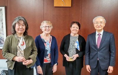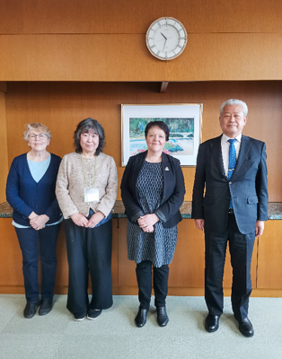 右から加賀谷学長、Helli Kitinoja氏、Ulla Harju氏、佐々木教授