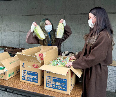 2015年以来、本学セブンイレブンと共同で行ってきたポレポレプロジェクトは、他者との協働を主眼に、過去には「カフェポレポレ」や地域住民の方へ向けた配達事業も含めた拡大版「ポレポレ市」を実施しました。今年度はコロナ感染対策を万全に期すため、本学の学生、教職員に限定した野菜市の開催とし、同時にポレポレプロジェクトの継承を大きな目標として掲げました。