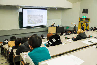 ご講演およびワークショップ(グループ・ワーク)は1年生対象のマーケティング論の授業で行いましたが、この授業自体の企画及びワークショップは、すべて2年生の田邊ゼミ生が八木様にご提案したもので、当日のインストラクターもゼミ生全員で当たりました。