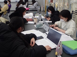 3年生は1月の連休が明けてから作業療法研究法の授業が始まりました.この授業は「研究とは何か?」,「研究をどう進めばいいのか?」など研究の基礎から具体的な進め方まで学ぶ授業です.学生は教員自作のテキストを使いながら,一歩一歩学習していきます.この授業は座学だけではなく,文献抄読や研究計画書の作成などの演習も入っています.学生たちは気になる文献を読み,友達や先生と話しながら,自分の興味のあるテーマに関して深めつつ,自分の知りたいことを少しずつはっきりさせます.