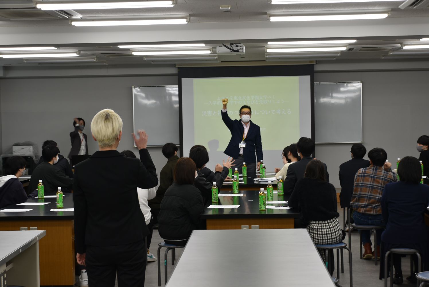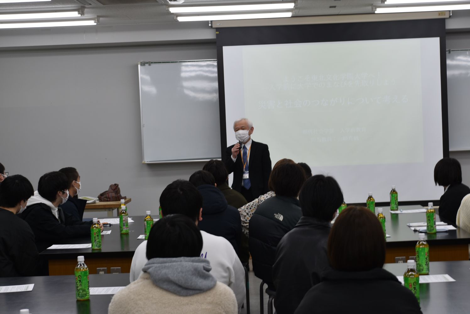 まずは模擬講義を通し、災害と社会のつながり、