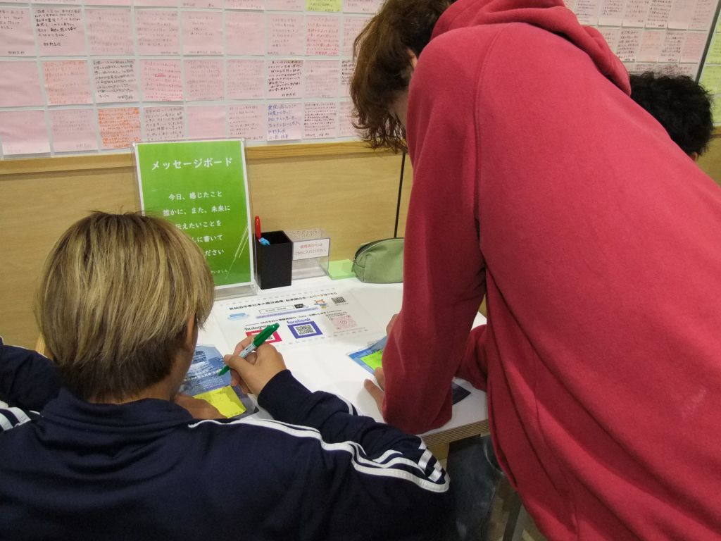 書いた付箋は、伝承館のホールに戻ってボードに貼ります。