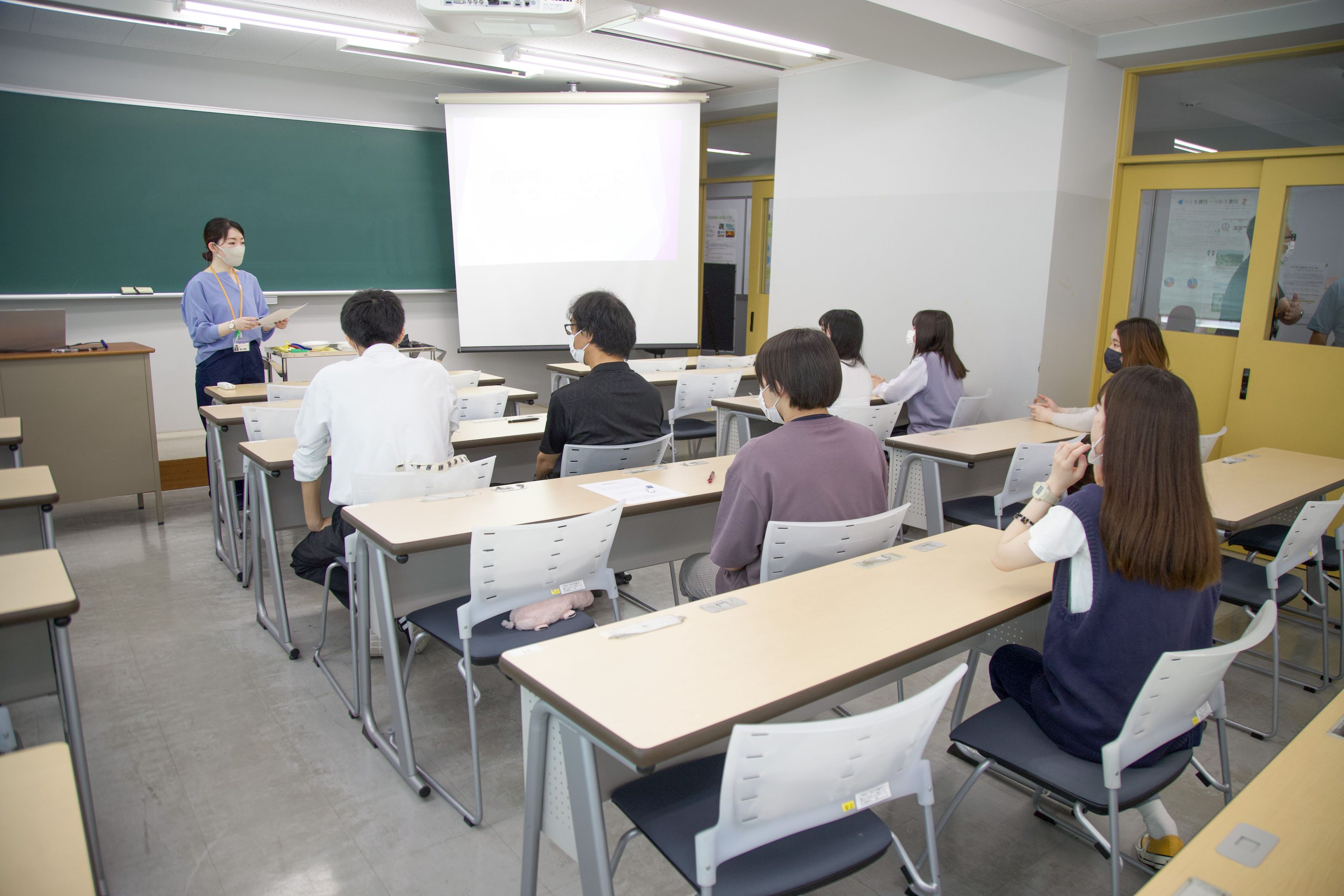 社会福祉学専攻では、黒沢助教が「高齢者になるってどういうこと?」と題して、現代社会の課題の一つでもある日本の高齢社会の現状などについて講義し、