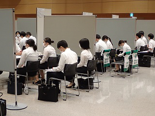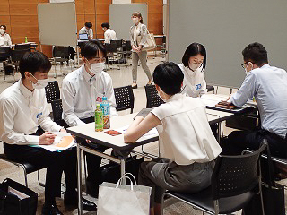 8月上旬、キャリアサポートセンター主催の合同就職説明会を開催しました。37の事業所の方に来ていただき、事業内容や勤務地等の説明をしていただきました。