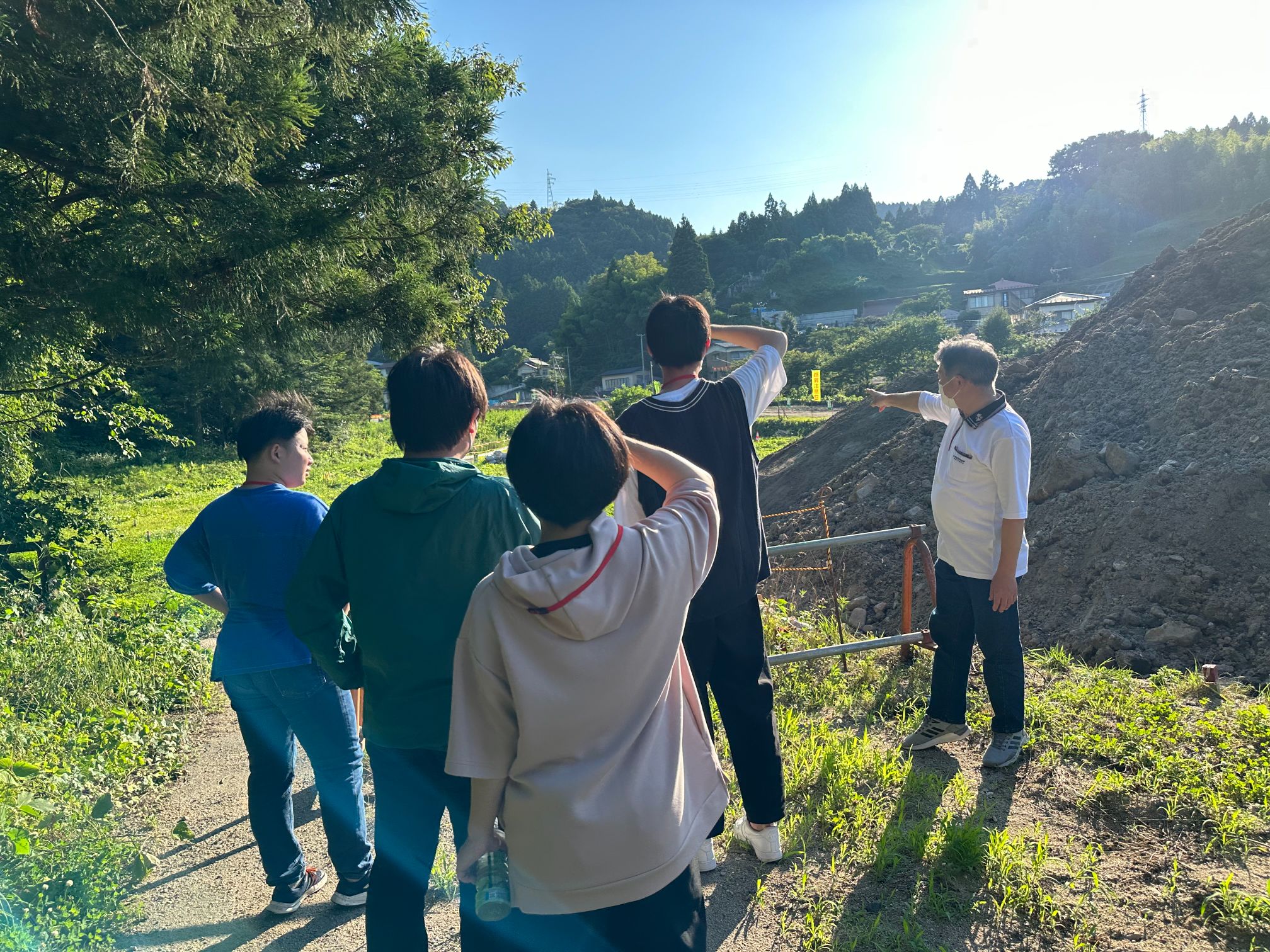 ●視察を通じて、当該地区が水資源に恵まれていることを実感しました。地域の住民からの証言を聞くことで、災害は時を選ばず訪れる可能性があることを再確認することができました。河川の氾濫地点の視察の際、該当地域が一時的に洪水となっても、水が速やかに流れ去るような地形であることを認識しました。この地形的特徴から、突如の浸水に対する予測の難しさを理解することができました。また、自然災害はその予測を超えて現れることを実感しました。特に活動中に、過去の災害の深刻な爪痕を未だに確認することができたため、自然災害に対する備えの重要性を認識しました。今後は文献をもっと調べ私達ができる支援を探っていきたいです。