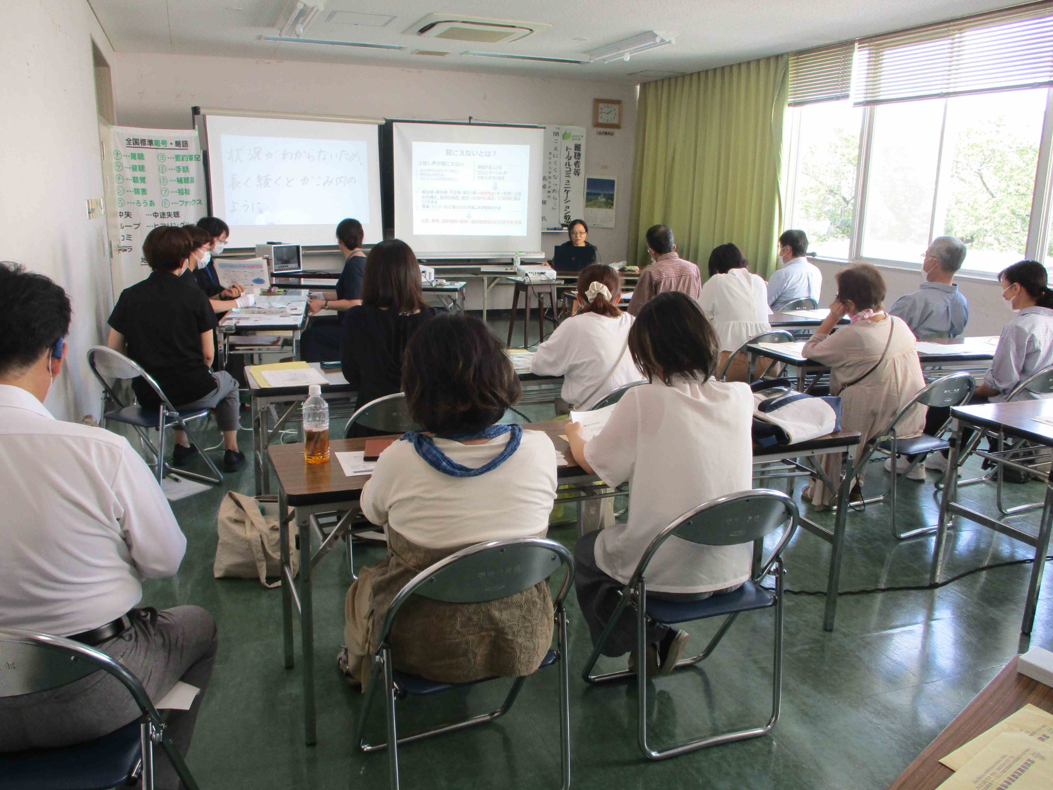 8月26日(土)、宮城県聴覚障害者情報センター主催の「難聴者等トータルコミュニケーション教室」が白石市中央公民館で開催され、高卓教授がきこえの不調を感じたときどう対処すればよいか、難聴が日常生活の質や認知機能に及ぼす影響、補聴器の購入方法や効果と限界などについて要約筆記(文字通訳)付きで講話を行いました。