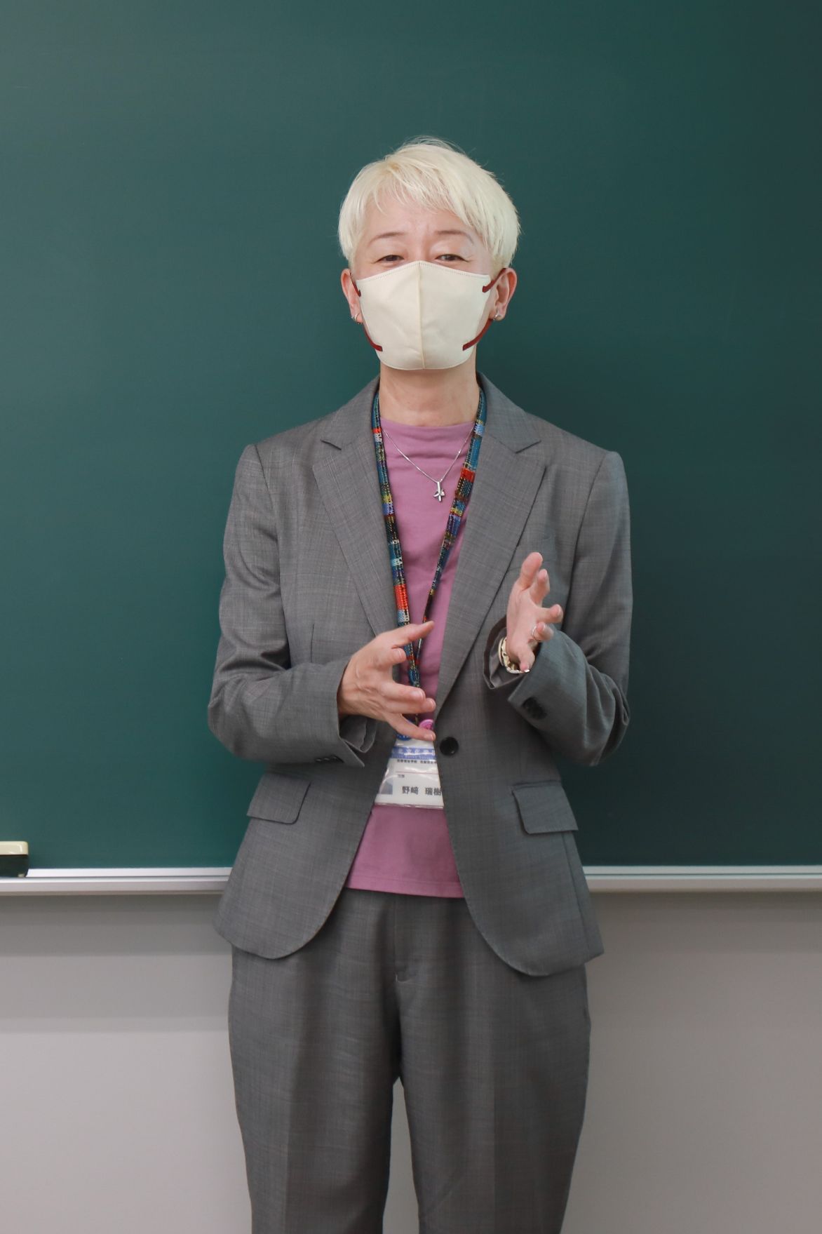 野﨑教授が担当した社会福祉学専攻の模擬講義では、『超高齢社会の未来―2043年の高齢者の生活を考える』として、現在の高齢者イメージと20年後の高齢者について考える講義を行いました。