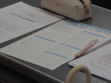ガイダンスでは、前期の成績の確認、後期の履修登録、学生生活の実態調査、学園祭などについて確認をしました。