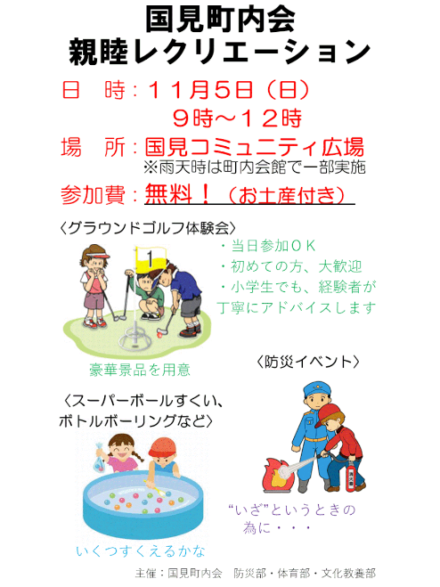 去る11月5日(日)に国見コミュニティ―広場を会場として国見町内会主催のレクレーションイベントが実施されました。