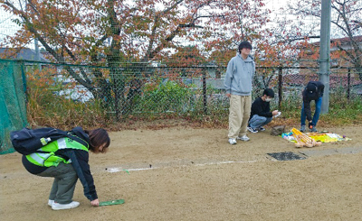 そうした行事に本学の“探求・理解プロジェクト”の「地域活動・ボランティア」(1年次配当)と「ボランティア探求」(2年次配当)の受講生ら1~3年生6名が参加し、町内会役員をはじめ地域住民の皆さんと親しく交流することが出来ました。