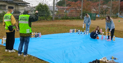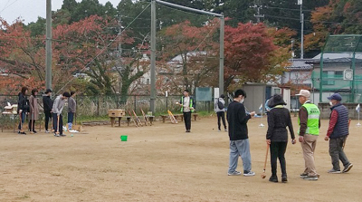 学生達ははじめこそ遠慮がち�したが、心優しい役員さんたちからの声掛けと参加してきた地域住民やその子供たちと一緒にグラウンドゴルフやペットボトルをピンとしたボトルボーリング等を行うことで、楽しいひと時を過ごしました。一時小雨がパラつくあいにくの天気ではありましたが、学生たちは自発的に楽しみながら活動するというボランティア活動の本質の一つを身をもって体験することが出来ました。