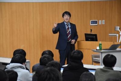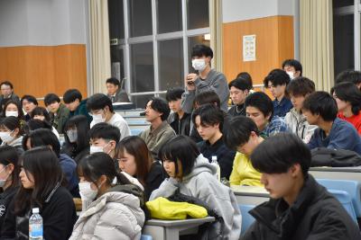 講義終了後も個別に質問していた学生もおり、普段の学習とはまた違った講義に興味が尽きないという状況でした。
