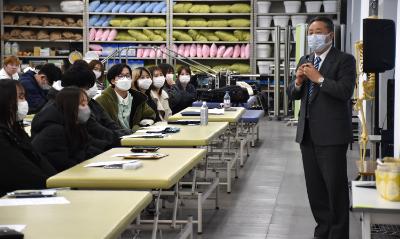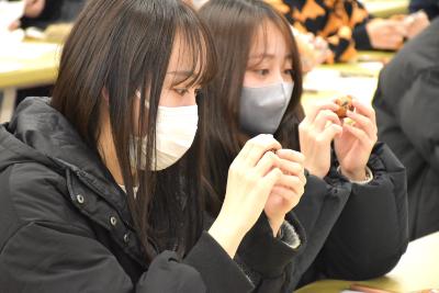 学生達へ「受験票」や「起き上がりだるま(松田工房)」、合格鉛筆を渡しました。