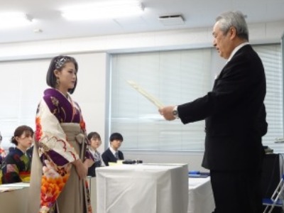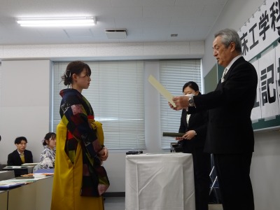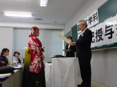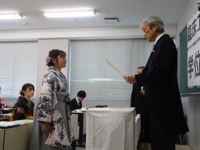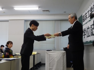 相澤康弘学科長より一人ひとりに学位記が授与されました。