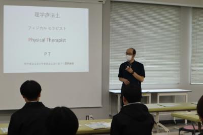 小林専攻長からの専攻説明に続き、「理学療法のシゴトを知ろう!」と題したレクチャーを行いました。