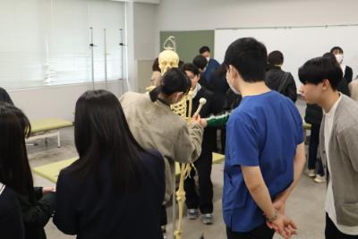 その後、理学療法士が使用する検査器具や電気刺激機器を用いた理学療法の体験や、大学で学習する骨や筋肉を模型にて組み立てを行いました。