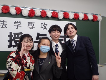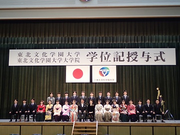 3月15日、学位記授与式が行われました。今年は数年ぶりに保護者のご列席が可能となり、華やかな式典となりました。全体での式典ののち、専攻別の式典が行われました。