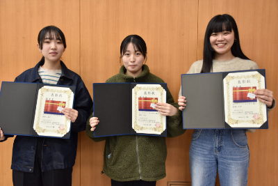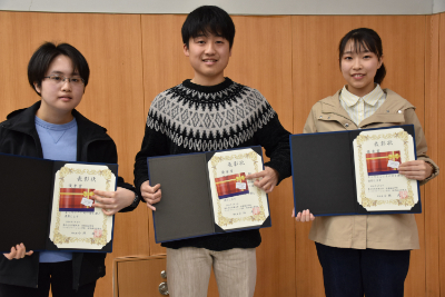 優秀賞:該当年次において、学業に専念し、優秀な成績を修めた学生
