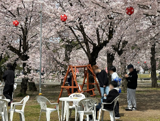 今年は例年より桜の開花が遅れ、授業開始と同時に満開となりました。そこで本日は良き天候のもと「あおぞらゼミ」と称して屋外でゼミを実施しました。