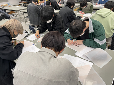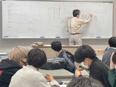 鈴木伸夫教授が講師を務め、指数関数・対数関数とデータ処理の解説を行いました。その後、学科教員総出で演習指導に参加し、アクティブラーニングを実践しました。新1年生たちは対数目盛の意味を理解して方眼紙に関数のプロットを練習しました。講座を通じて、「はじめて対数の意味が分かりました」、「楽しかった」などのコメントが寄せられました。