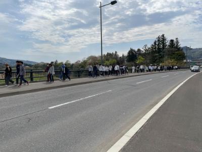 仙山線愛子駅から本学までの道のりを約2時間かけて歩きました。