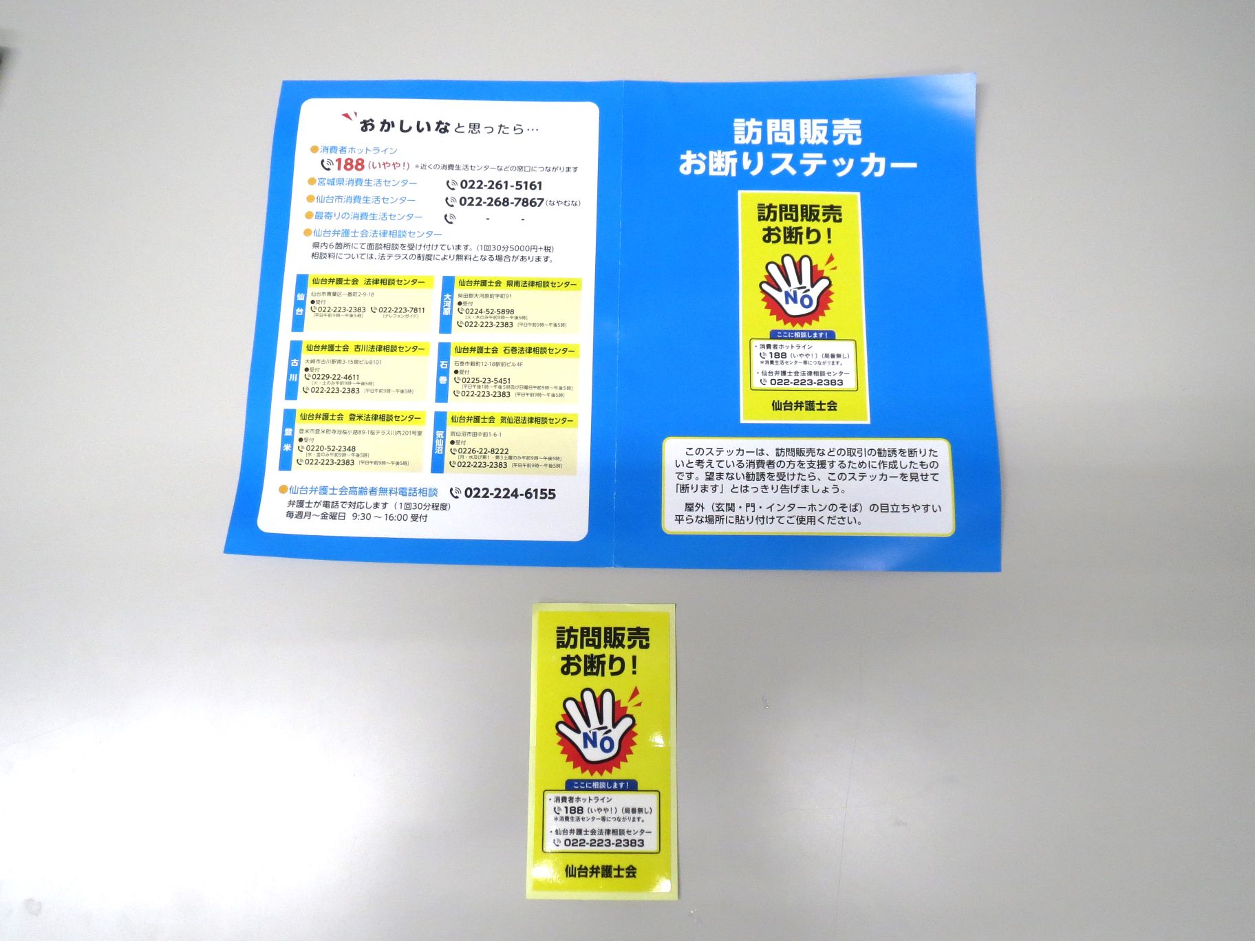 訪問販売お断りのステッカーや消費者ホットライン「℡188(いやや!)」も紹介いただきました。