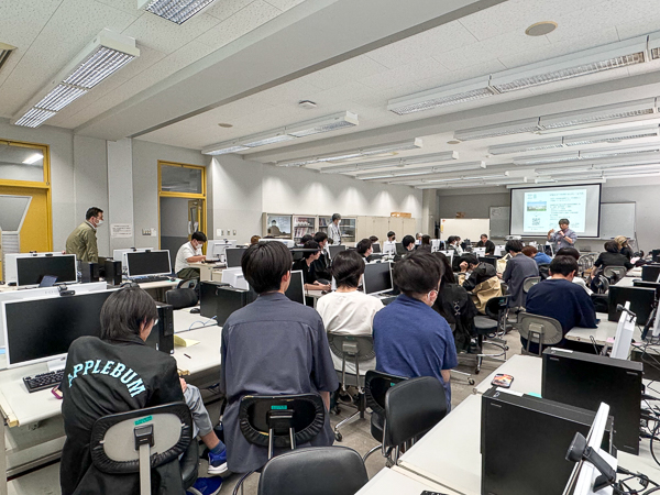 2024年5月24日(金)の2時限に、知能情報システム学科コンピュータ室にて、1年生を対象に「伊達なICT企業としごとの魅力」講座が開かれました。宮城県情報サービス産業協会(MISA)人財委員会副委員長の高谷将宏氏)と株式会社ナナイロディレクターの山口和彦氏が講師として招かれました。