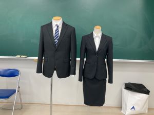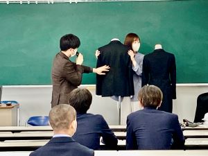 今日の授業はスーツの着こなしの指導です