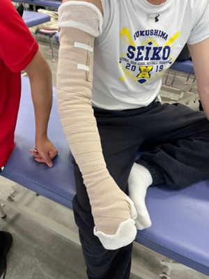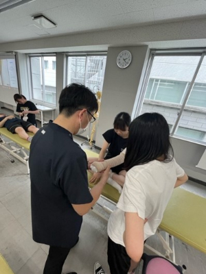 浮腫がある部位に対して、弾性ストッキングや専用の包帯を用いて患部を圧迫することにより浮腫をコントロールする手技を学びました。