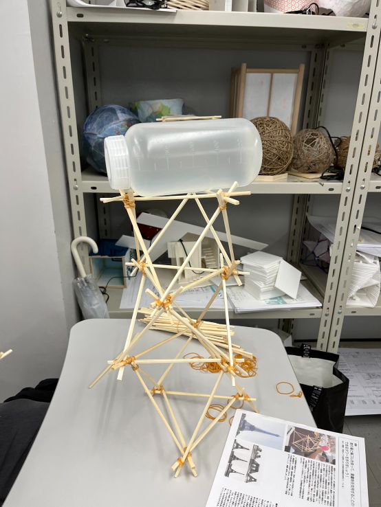 当日参加してくれた高校生の皆さんもすぐにつくり方を覚えて、1kgのおもりに耐えられる構造体をつくってくれました。