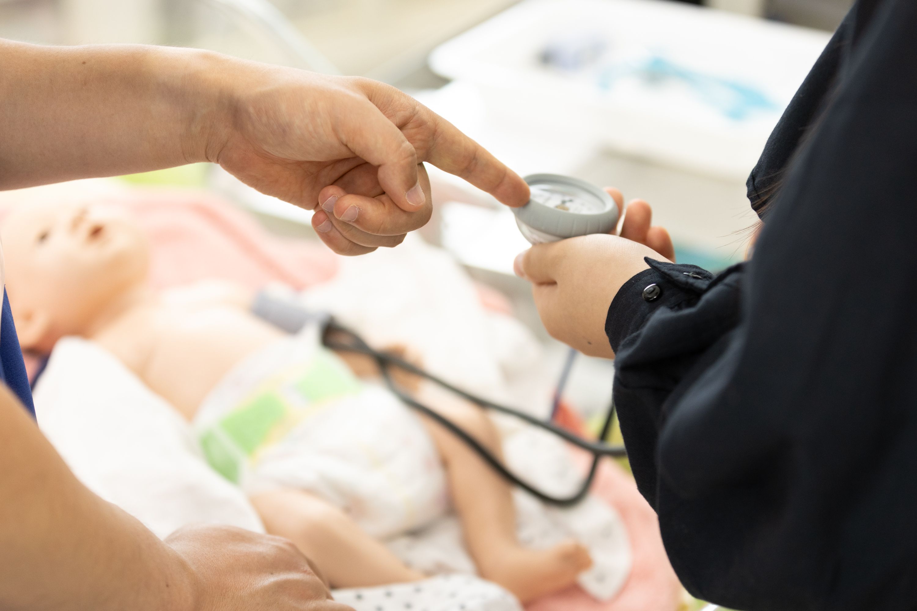 <乳児のシミュレーターによるバイタルサイン測定体験>