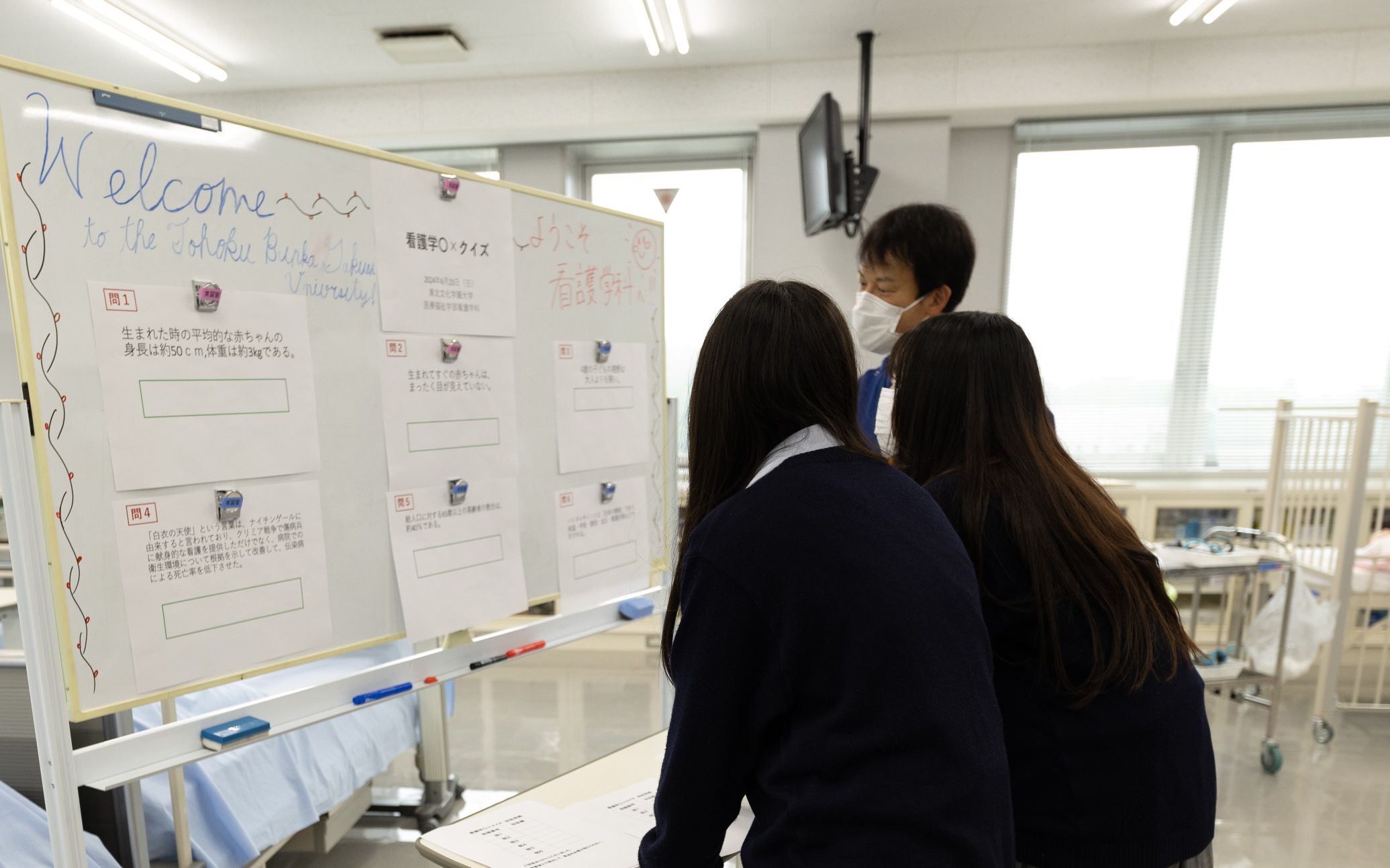 その他にも、看護学に関するミニクイズを解いて大学グッズをもらえるコーナーや、