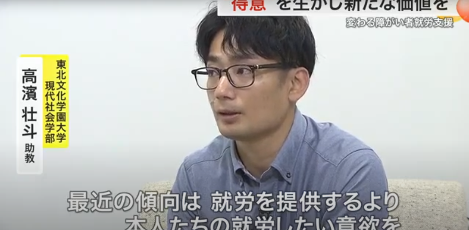 「得意を生かして新たな価値を 変わる障がい者就労支援のカタチ〈仙台〉」といったテーマで、障がい者の就労の変化に関するニュースが放送されました。