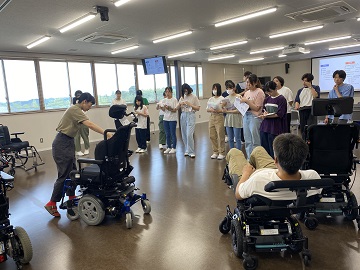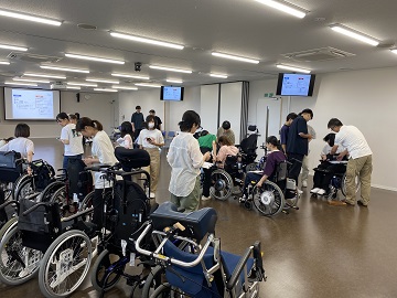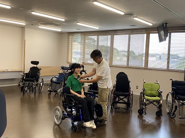 大学にも一般向けに販売されている車椅子はあるのですが、今回の見学では実際に対象者のニーズに合わせて提供する車椅子を体験することができました。