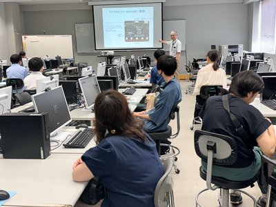今回の模擬授業は、神村准教授による「はじめてのマイコン電子工作入門」でした。参加者たちはマイコンを使ってLEDを点滅させるプログラムに挑戦しました。皆、熱心に取り組み、マイコンによる基本的な制御の仕組みを体験しながら学んでいきました。プログラムが完成し、実際にLEDが点滅し始めると、参加者たちは喜びと達成感にあふれていました。