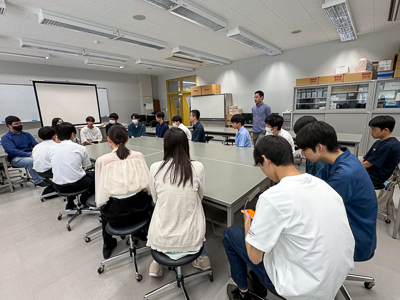 最後に在学生とのフリートークも行われました。在学生が自分の入試体験、学科の魅力や就職活動について語り、和やかな雰囲気で交流が進みました。