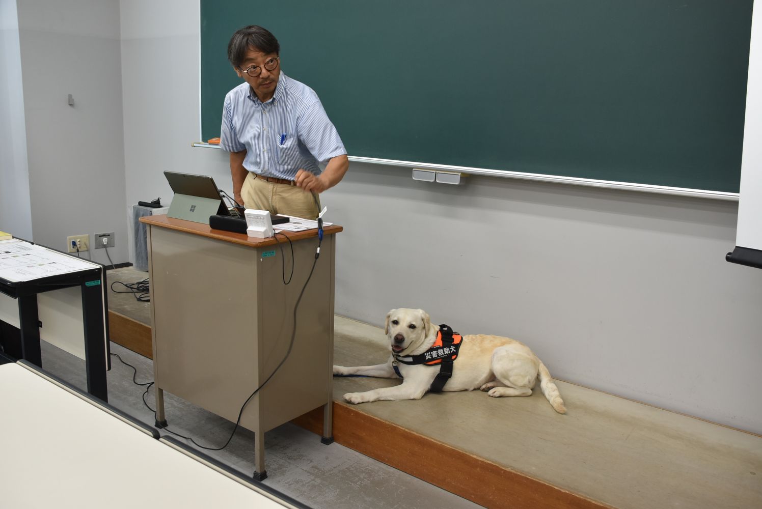 岡教授の講座には災害救助犬ビアンカも参加しました(参加者の方々にも大人気!)。