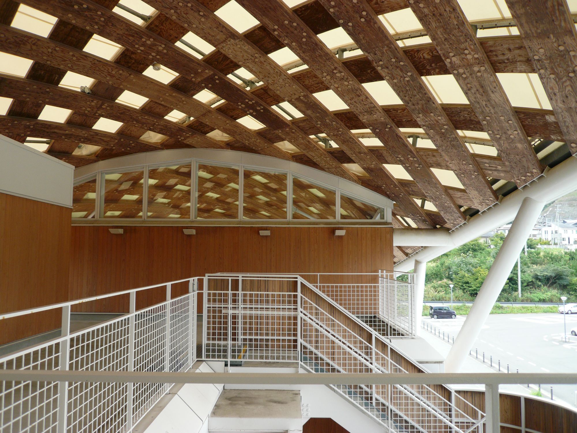 女川駅は、坂さんの設計で、木を使った網目状の構造や紙管の家具などを体験しました。