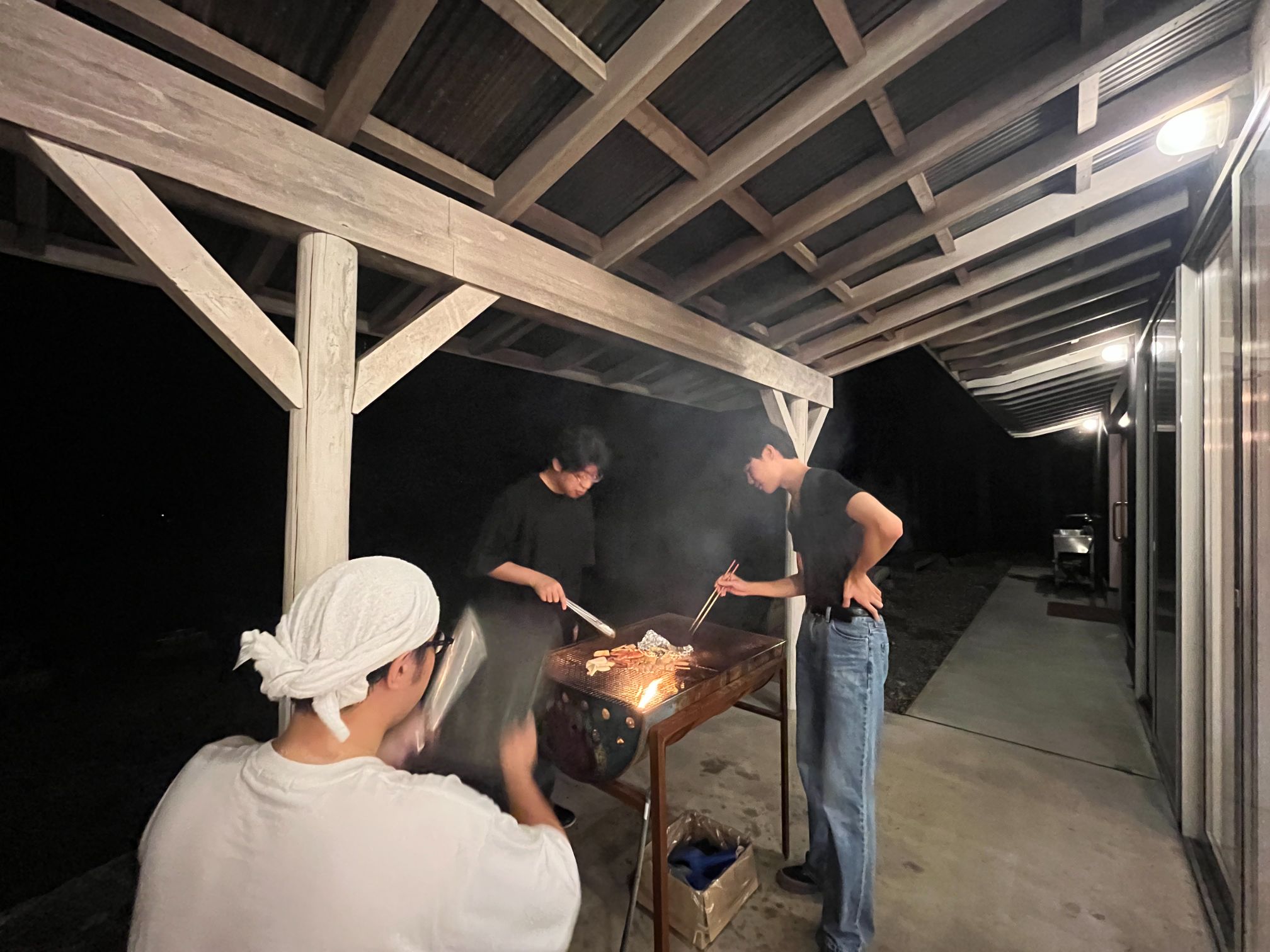 夜は、アトリエワンやドット・アーキテクツが設計した宿泊棟のあるもものうらビレッジに宿泊し、食材を買って皆でBBQをしました。