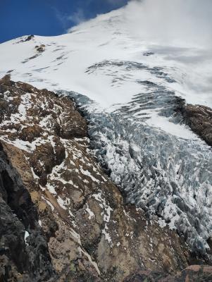 やっとの思いで300mを登り(鼻水が出ても拭く余裕ないくらい息が苦しい)、氷河が目の前に現れたときは感嘆の声をあげましたが、強風にかき消されてしまいました。