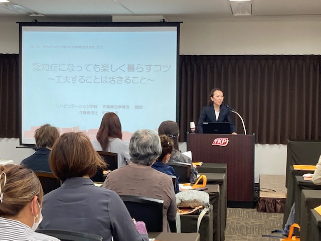 10月6日に、仙台駅前のTKRガーデンシティ仙台で東北文化学園大学フォーラムが開催されました。『誰もが活き活き暮らせる地域社会を目指して』というテーマで、若年性認知症当事者である丹野智文氏の講演と、本学作業療法学専攻の香山明美教授、矢萩未来講師から誰もが活き活き暮らせる地域社会を目指した提案がなされました。日曜にもかかわらず、103名という多くの方にご参加頂き、参加者の中には本専攻の現役の学生や、卒業生の顔ぶれもありました。
