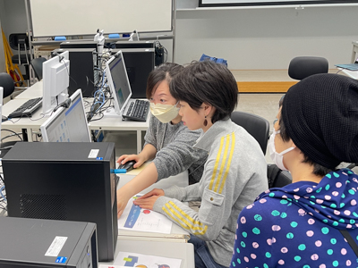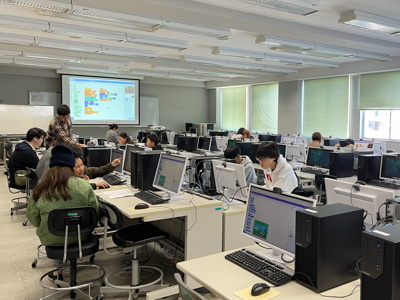 オープンキャンパスでは学科説明会を随時、大学祭イベントも兼ねて学科企画のARゲーム「フルーツニンジャ」の作成に挑戦しよう!を実施しました。学科説明会には高校生達が参加していました。学科企画には幼稚園児から本学科のOBまで幅広い層が参加し、熱心に取り組んでいました。そしてARゲームが完成すると、皆満足気に遊んでいました。また、参加者の中にはゲームの改良までに取り組む方が現れ、感激しました。