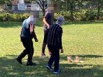 ボールを使った筋トレ、ゲームを使った脳トレを行い