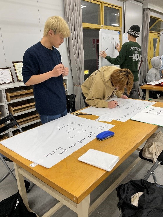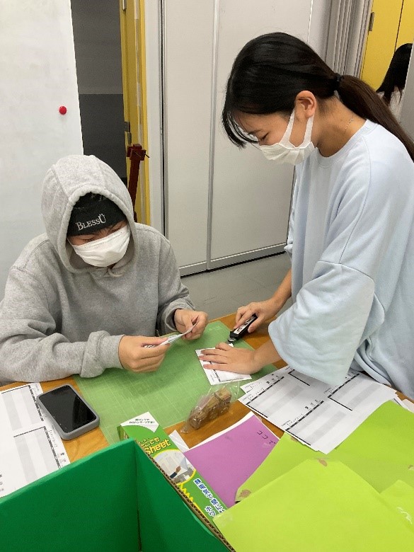 企画のリーダーを務めた2年生の学生は定期的に話し合い、これまで学んだ作業療法の知識や経験を活かしした体験ブースが用意されました。2年生は空き時間を利用し,進め方や役割分担について話し合い,1年生を交えての打ち合わせも行いました。