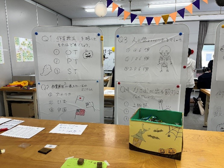 作業療法のことを知ってもらうために、��生たちがクイズを考えました。