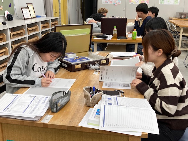 この科目は、「高次脳機能障害」や「精神障害」のように、他者からは『見えにくい』『理解されにくい』障害の評価について学びます。11月1日の授業では、WAIS-Ⅲという知能検査の実習を行いました。検査のやり方を学ぶだけではなく、検査を受ける側を体験することで、患者さんの立場に立った説明の仕方や検査後のフィードバックの仕方について考えを深めることが出来ます。別の日の授業では、患者さんの動画を見て、観察のポイントを学び、実際に記録する実習を行いました。年明けの初めての臨床実習Ⅰに向けて、実践的な学習をしています。