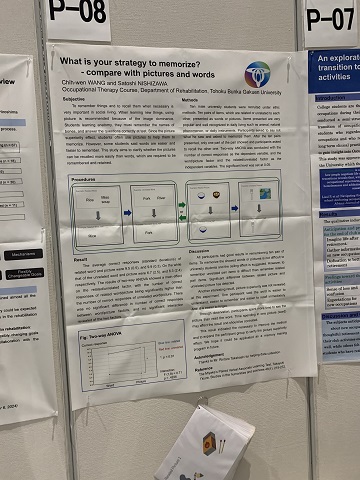こちらは「What is your strategy to memorize? – compare with pictures and words」をテーマに発表し,日本,シンガポール,台湾からの参加者と意見交換を行いました.失語症患者への適応方法や失敗感を与えない提示方法など,臨床的な応用に関する助言もいただきました.発表してよかったこととこれから改善して早く試してみたいとの期待感が同時に沸き上がり,これからの研究に活かしていきたいと思いました.